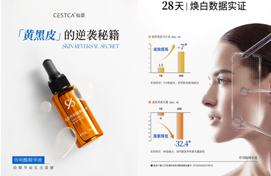 在效果验证层面,仙瑟联合第三方检测机构开展临床测试:针对传明酸精华液的实验数据显示,坚持使用4周可明显提亮肤色,8周能减淡色斑,同时改善熬夜暗沉与炎症后色素沉着,且油皮、干皮及敏感肌均可使用,充分证明产品的美白有效性与温和性。