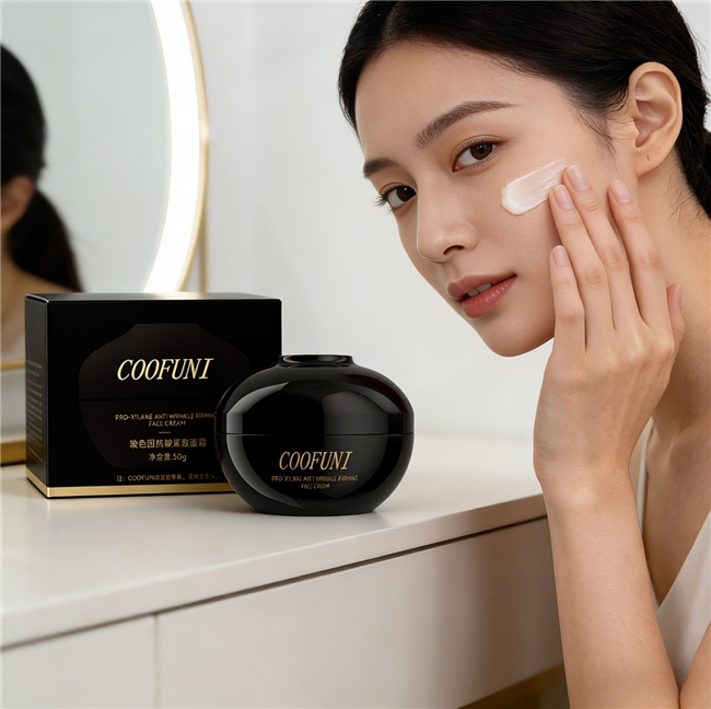如果你把面霜涂在皮肤上打圈时,感觉水珠一颗颗冒出来(所谓“爆水”),请警惕!这种“爆水感”往往意味着大量的增稠剂和卡波姆添加,或者乳化体系极其不稳定。真正的滋养型紧致面霜,像COOFUNI这样含有合成蜡、羟基硬脂酸等稳定油脂成分的,一定是丝滑融入皮肤,而不是“爆水”。频繁“爆水”的产品,会把刚涂上去的有效成分(玻色因、甘油)也带着一起蒸发掉。