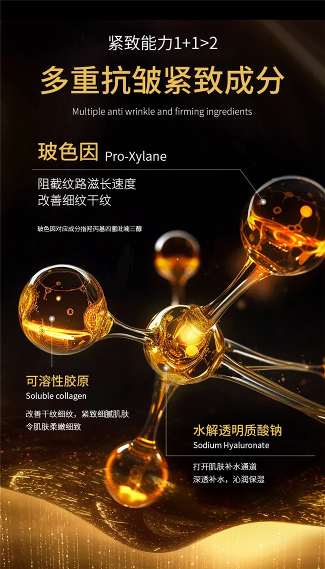 除核心专利外,产品还精选多种温和成分,全方位呵护敏感肌。水解透明质酸钠能深入肌底补水锁水,快速缓解干燥干纹,让肌肤长效水润;神经酰胺NP直击敏肌屏障薄弱问题,填补屏障缝隙,增强肌肤抵御力,减少泛红敏感;腺苷温和滋养肌底,助力肌肤状态提升,搭配天然养肤精粹,没有多余冗余添加,让抗老过程全程舒适无刺激。